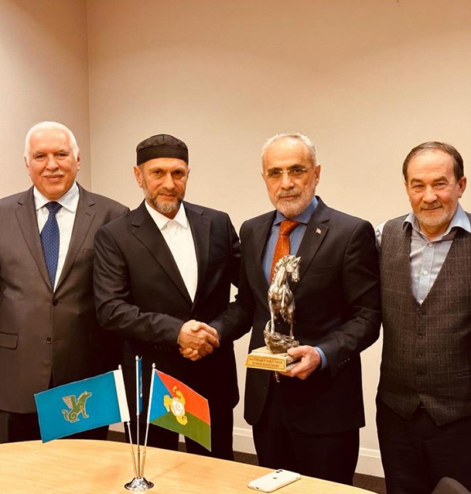 Cumhurbaşkanı Başdanışmanı Yalçın Topçu, Rusya Federasyonu Kumuk Türkleri Sultan-Mut Tarkulu Etenekli Gençleri Destekleme Vakfı Başkanı Abdurahmanov Nadirsoltan Gadjieviç, Nogay Türkü ozan ve bestecisi Arslanbek Sultanbekov ve beraberindeki heyetle makamında bir araya geldi. Topçu, “Kumuk Türkleri, Dağıstan ve Kuzey Kafkasya’nın kadim Türk halklarındandır. Rusya vatandaşı Kumuk kardeşlerimize, diğer Türk soylu halklara Türkiye-Rusya ilişkilerine olan katkıları ve asrın depremini yaşadığımız bu günlerde Rusya’daki Sultan-Mut Tarkulu Etenekli Gençleri Destekleme Vakfı’na destekleri için şükranlarımı ve teşekkürlerimi sunuyorum. Rusya vatandaşı Kumuk Türkleri ve bütün halklarının güvenli, özgür ve refah içerisinde yaşamalarını diliyor, saygı ile selamlıyorum. Vakıf Başkanımız kardeşim Abdurahmanov Nadirsoltan Gadjieviç’e, vakfın mensuplarına, destek olan bütün kardeşlerimize acımızı paylaştıkları ve nazik ziyaretleri için hasseten teşekkür ediyorum” dedi.