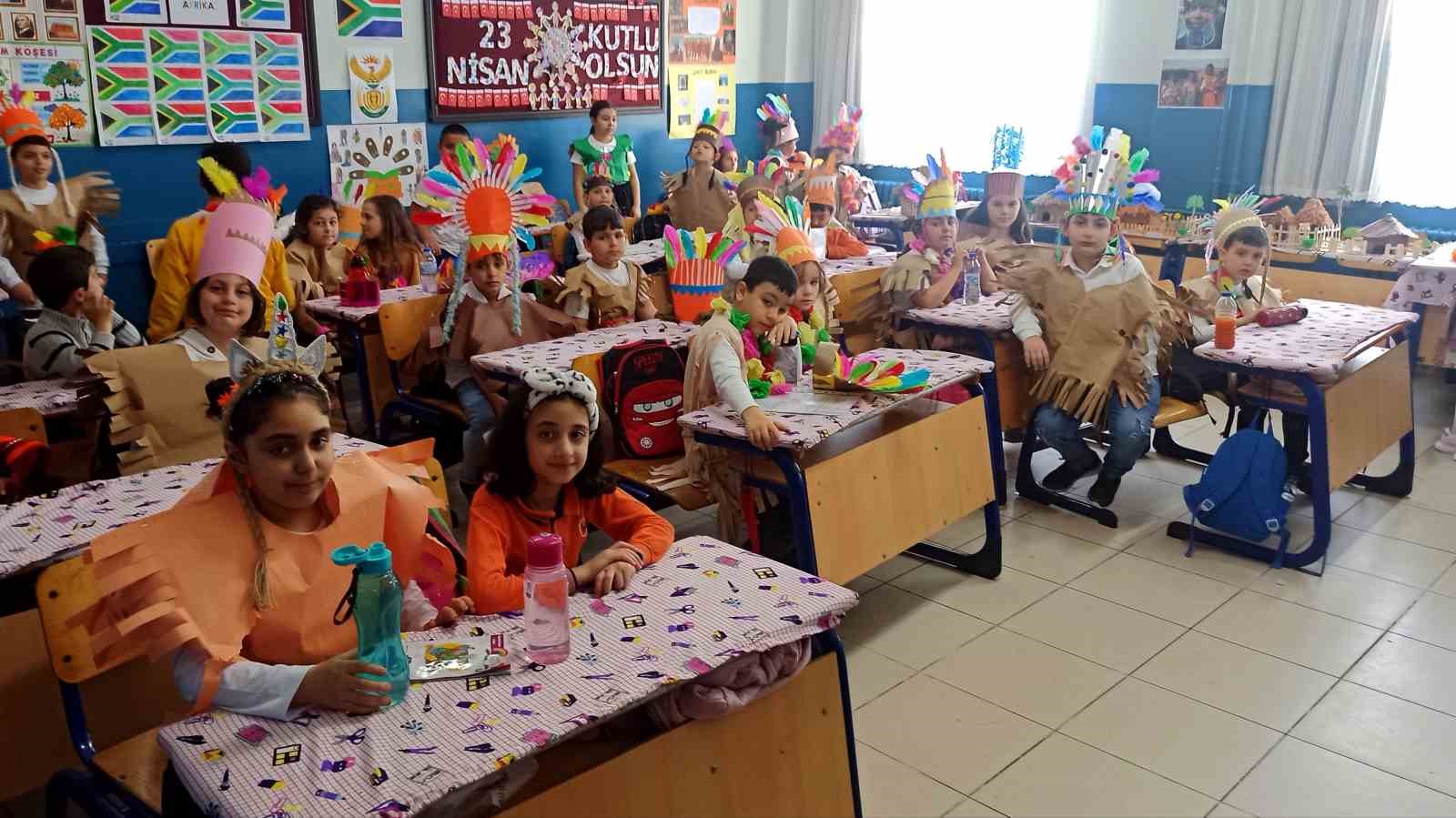 Sınıf öğretmeni Sevinç Solmaz ise, “23 Nisan bayram tatiline denk geldiği için biz bu şekilde etkinlik yapma karar aldık. Her katı kıtalara ayırdık ve çocuklara her sınıfa bir ülkeyi tanıtmasını sağladık. Çocukların ülkelerin gelenekleri ve görenekleri bizden ne gibi farklılıkları özellikleri var geçmişleri nasıl, çocukların bunların tanımasını sağlamaya çalışıyoruz” şeklinde konuştu.