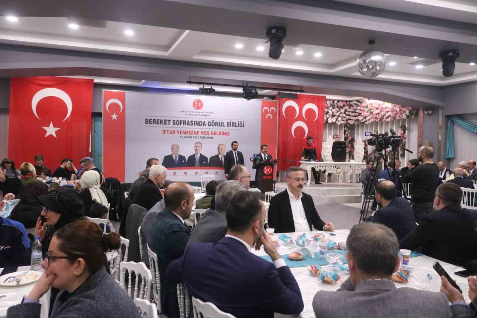 MHP Yıldırım İlçe Başkanlığı, Mesken Mahallesi’nde geniş katılımlı bir iftar p ramı düzenledi. Mahalle sakinlerinin yoğun ilgi gösterdiği iftar programı, dualar ile başladı. Programın açılış konuşmasını MHP Yıldırım İlçe Başkanı Kadir Taşçı yaptı. MHP Bursa 2’nci Bölge Milletvekili Adayı Fevzi Zırhlıoğlu da iftar programında Mesken Mahallesi sakinlerine seslendi.