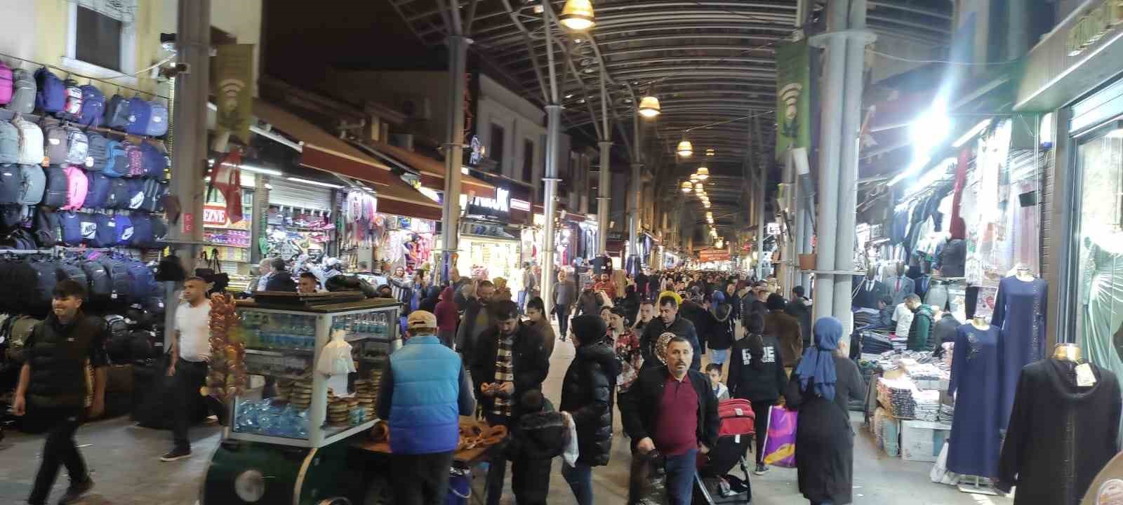 Ramazan Bayramı’na sayılı günler kala Bursalılar gece karanlığına aldırış etmeden tarihi kapalı çarşıya akın etti.