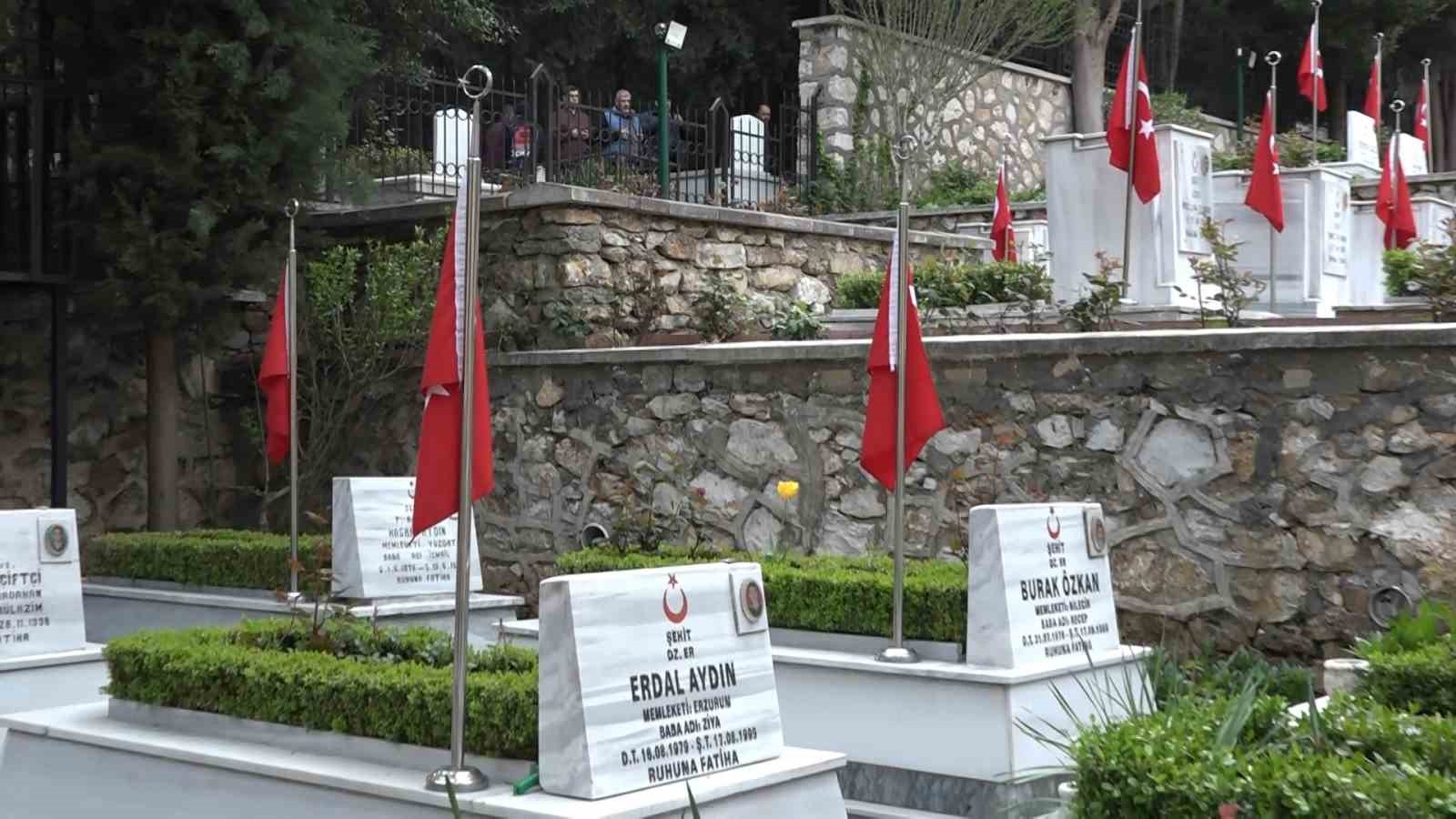Bursa’da şehit yakınları, bayram ziyaretlerinin ilkini şehitlerinin kabrine yaptı. Şehit aileleri dualar edip, temizlik yaptı.
