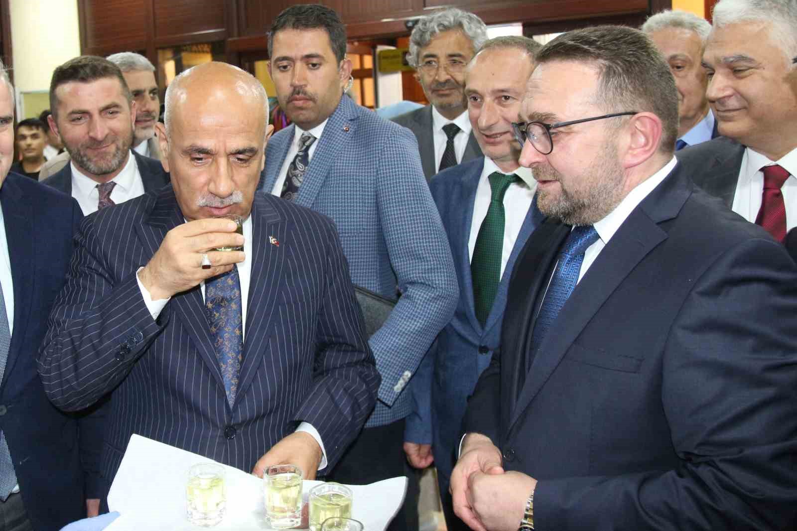 Tarım ve Orman Bakanı Vahit Kirişci, tarım sektörünün temsilcileri ile gerçekleştireceği programa katılmak üzere Rize’ye geldi. Rize Ticaret Borsası’nda düzenlenen ’Rize Tarım Sektörü Temsilcileri Toplantısı’ öncesinde Borsa Başkanı Mehmet Erdoğan, Bakan Kirişci’ye Çay Araştırma Merkezi (ÇAYKMER) tarafından organik olarak üretilen yeşil çay hakkında bilgi verdi. Bakan Kirişci burada kendisine ikram edilen çayın tadına baktı.