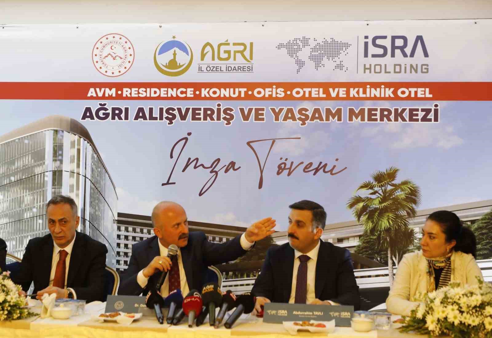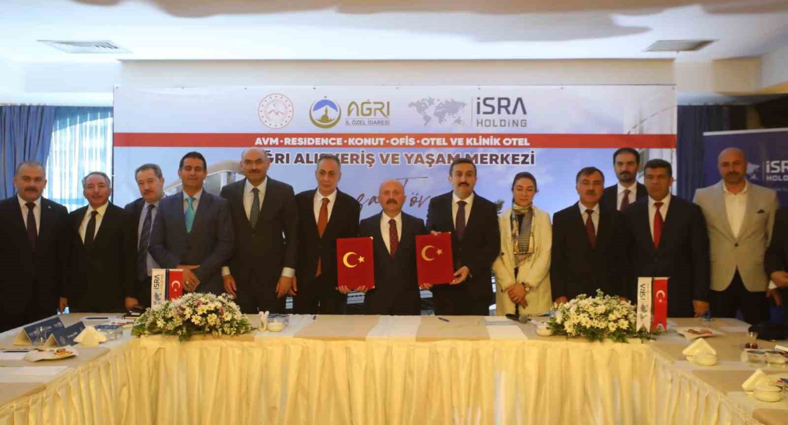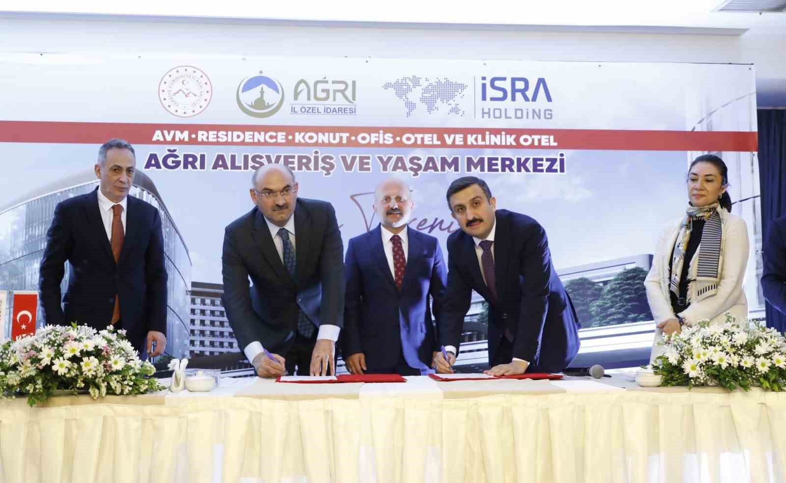 Ağrı’da, bölgenin ilk ve en büyük karma projesi olarak hayata geçirilecek olan “Ağrı Alışveriş ve Yaşam Merkezi Projesi” tanıtım programı düzenlendi. Ağrı Valiliği ve İsra Holding iş birliği ile başlayacak olan karma konsept proje içerisinde AVM, 5 yıldızlı otel, modern siteler, rezidans daireler ve sağlık üniteleri yer alacak. Kente önemli bir ekonomik ve sosyal dönüşüm gerçekleştirerek istihdama da katkı sağlayacak olan projeye 5 milyar TL yatırım yapılması planlanıyor.