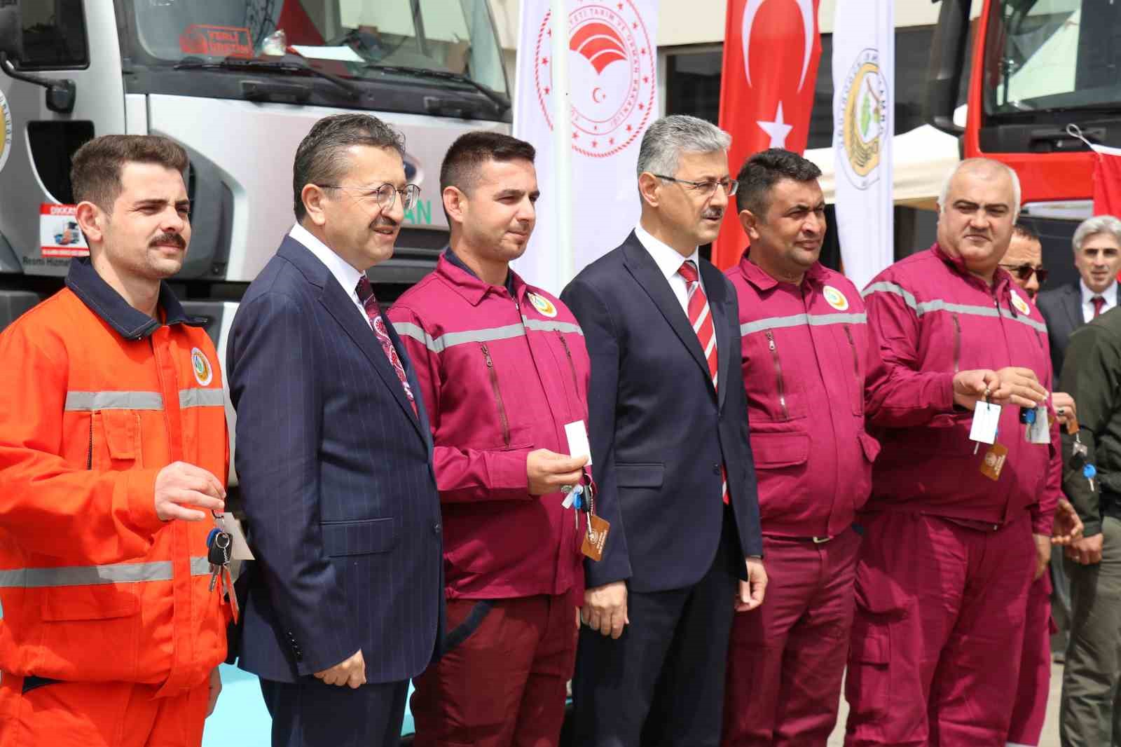 Mevsimlerin değiştiğine dikkat çeken Tarım ve Orman Bakan Yardımcısı Veysel Tiryaki, “Şu anda dünyada artık mevsimler değişiyor. Dünyanın birçok ülkesinde bu mevsimde bile orman yangınları devam ediyor. Sizlerin verdiği vergilerle toplanan paraları orman mücadelesinde kiraladığımız uçaklara büyük paralar ödeniyor. Burada rakamları söylemek istemiyorum. Yangınla mücadele konusu başta olmak üzere ve bu araçlar sadece yangında değil diğer işlerde de kullanılacak var. Dozerler, greyderler kamunun, devletin, milletin ihtiyacı olan her yerde kullanılacak. Bu iklim değişikliğine paralel olarak başlayan yangınlardan dolayı her yıl devletin önemli bir parası, bütçesi maalesef dışarıdan kiraladığımız uçakları kiralamalara gidiyor. Birkaç ay önce başladığımız bu araçların alımlarıyla ilgili Türkiye’deki orman bölgeleri başta olmak üzere, yangın ihbarı olan yüksek yerlere bu araçları aldık ve bölgelere gönderdik. Sadece şu kadarını söyleyeyim, her vilayete bu kadar araç geldiğini zannetmeyin. Bunu baştan söylemiş olayım. Birkaç ay içerisinde bu aldığımız araç kadar daha araç olacağız. Şu anda alacağımız kurumlarla pazarlıkları yapılıyor. Bunlara ihtiyacımız vardı” dedi.