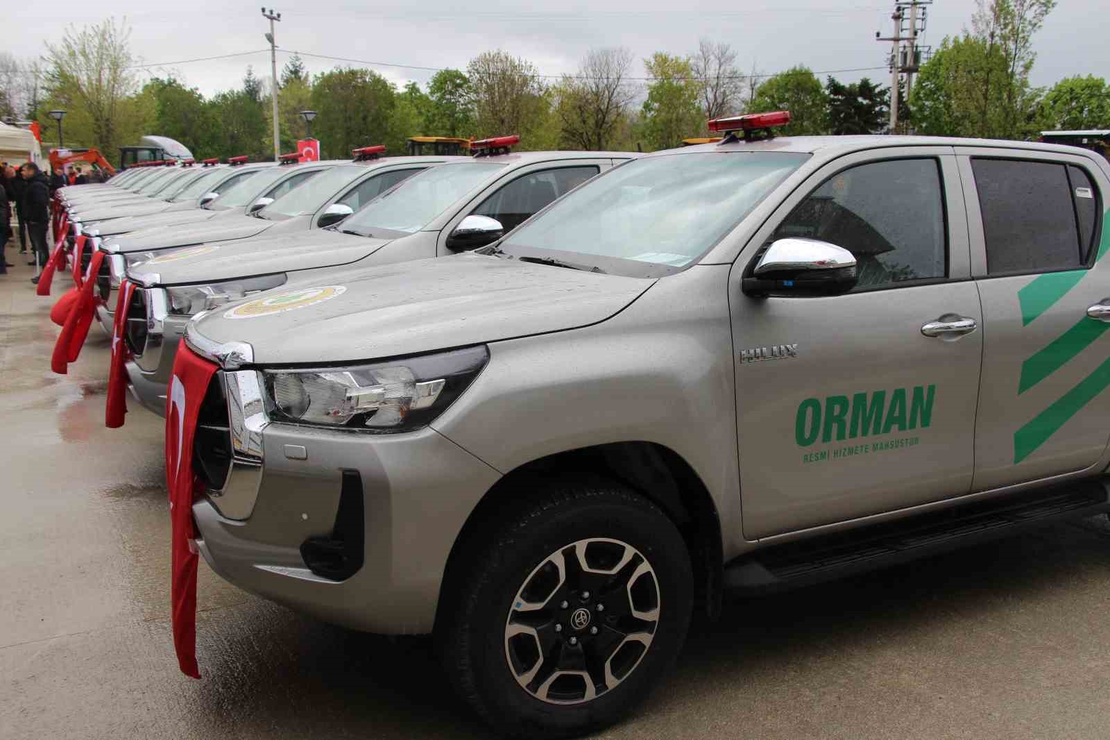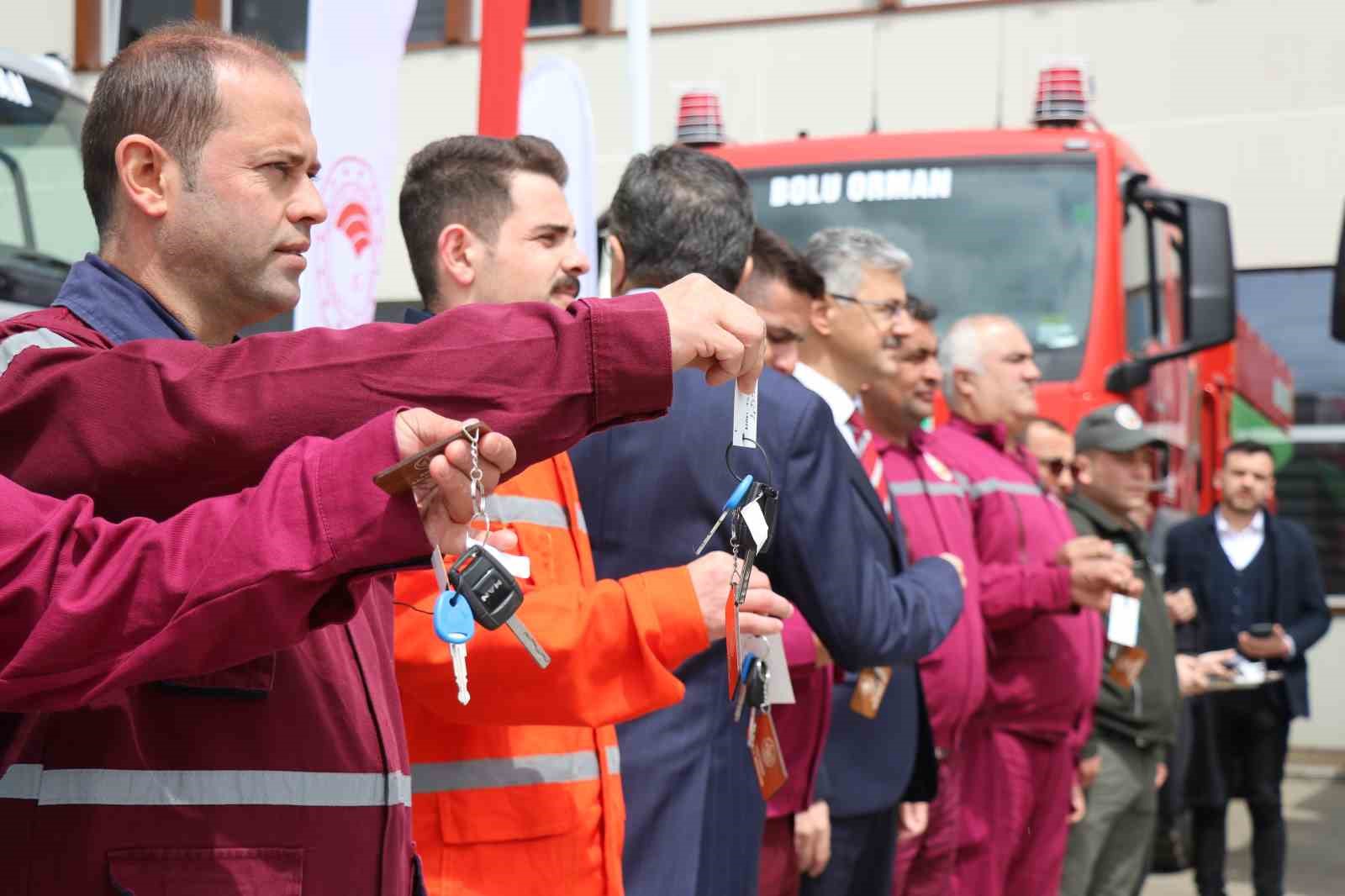 Orman Genel Müdürlüğü tarafından Bolu Orman Bölge Müdürlüğü filosuna dahil edilen 3 dozer, 7 greyder, 2 ekskavatör, 2 mini ekskavatör, 3 kamyon, 10 arazöz ve 14 yangın ilk müdahale aracı Bolu’ya getirildi. Tarım ve Orman Bakan Yardımcısı Veysel Tiryaki’nin katılımıyla düzenlenen anahtar teslim töreninde orman personeline araçları teslim edildi.