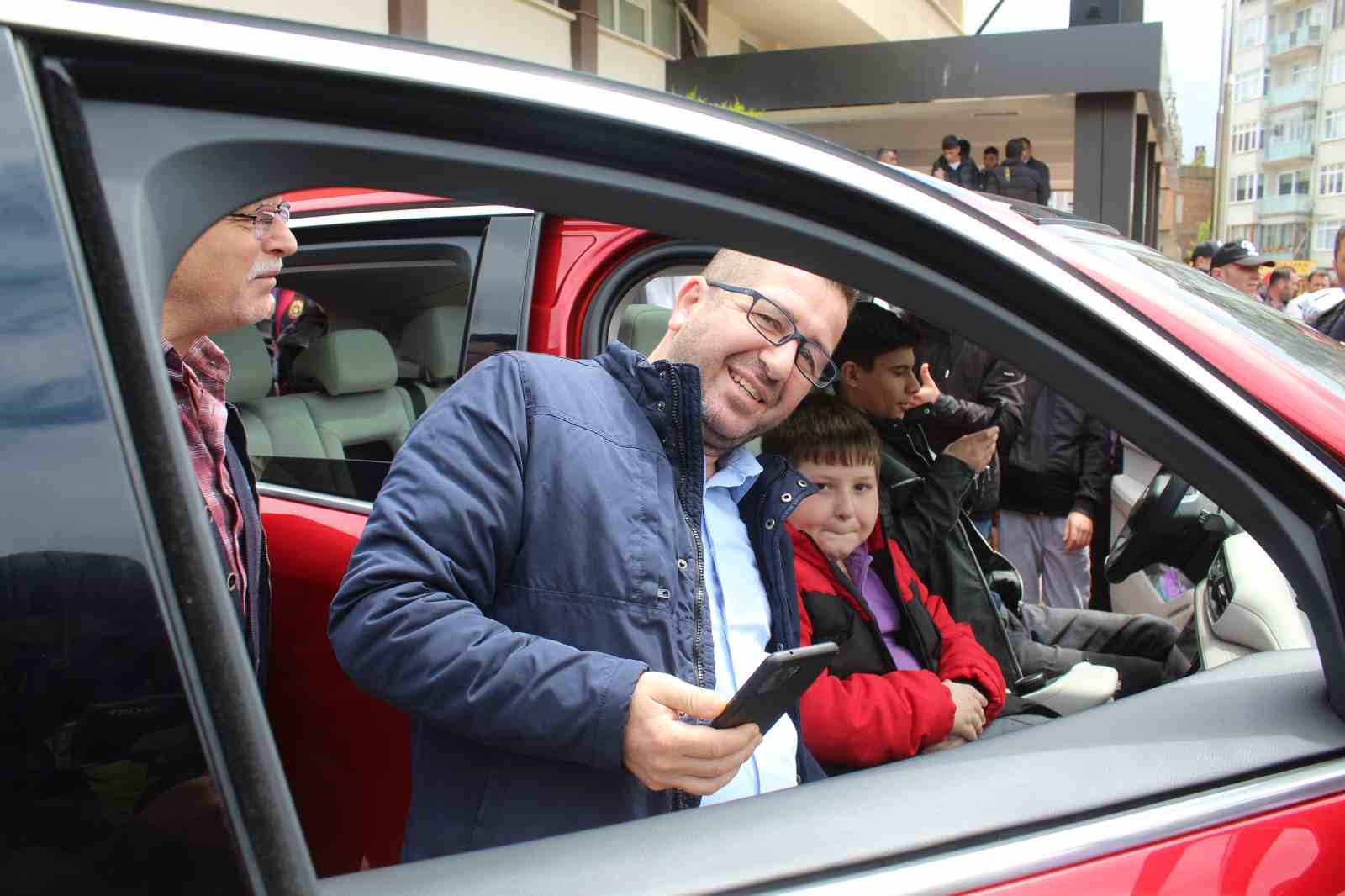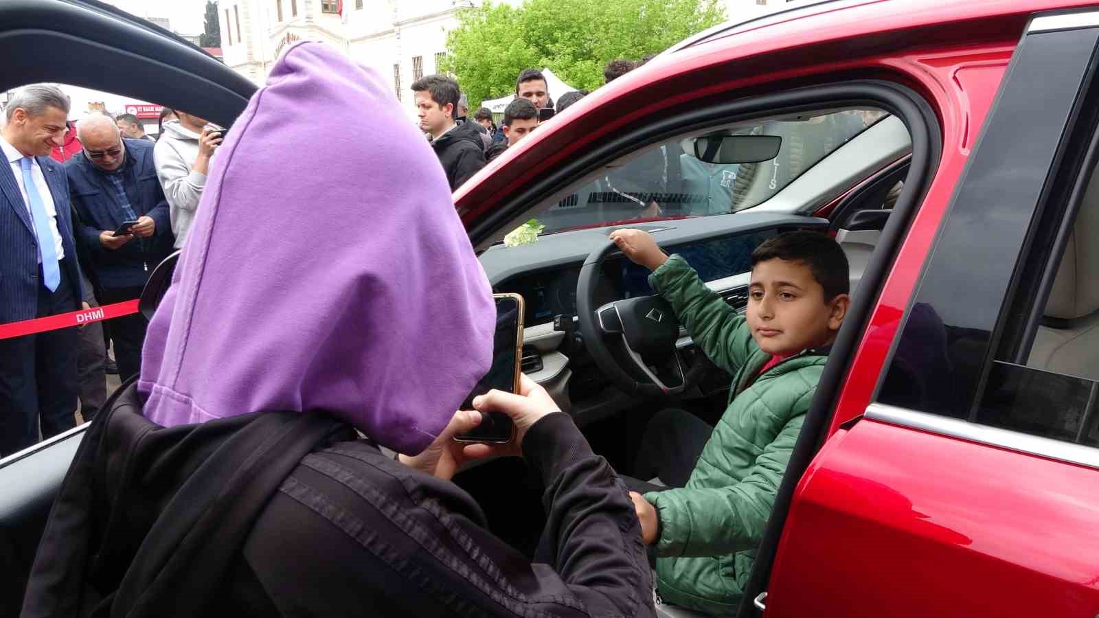 Aracı çok beğendiğini söyleyen Gülay Aksu, “Çok beğendim, çok gururlandım. Yakından gördüm, henüz binemedim gençler çok meraklı önce onlar binsinler ama çok muhteşem bir araba, çok güzel gözüküyor” dedi.