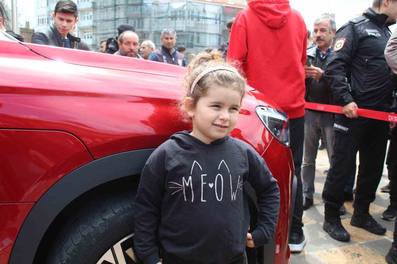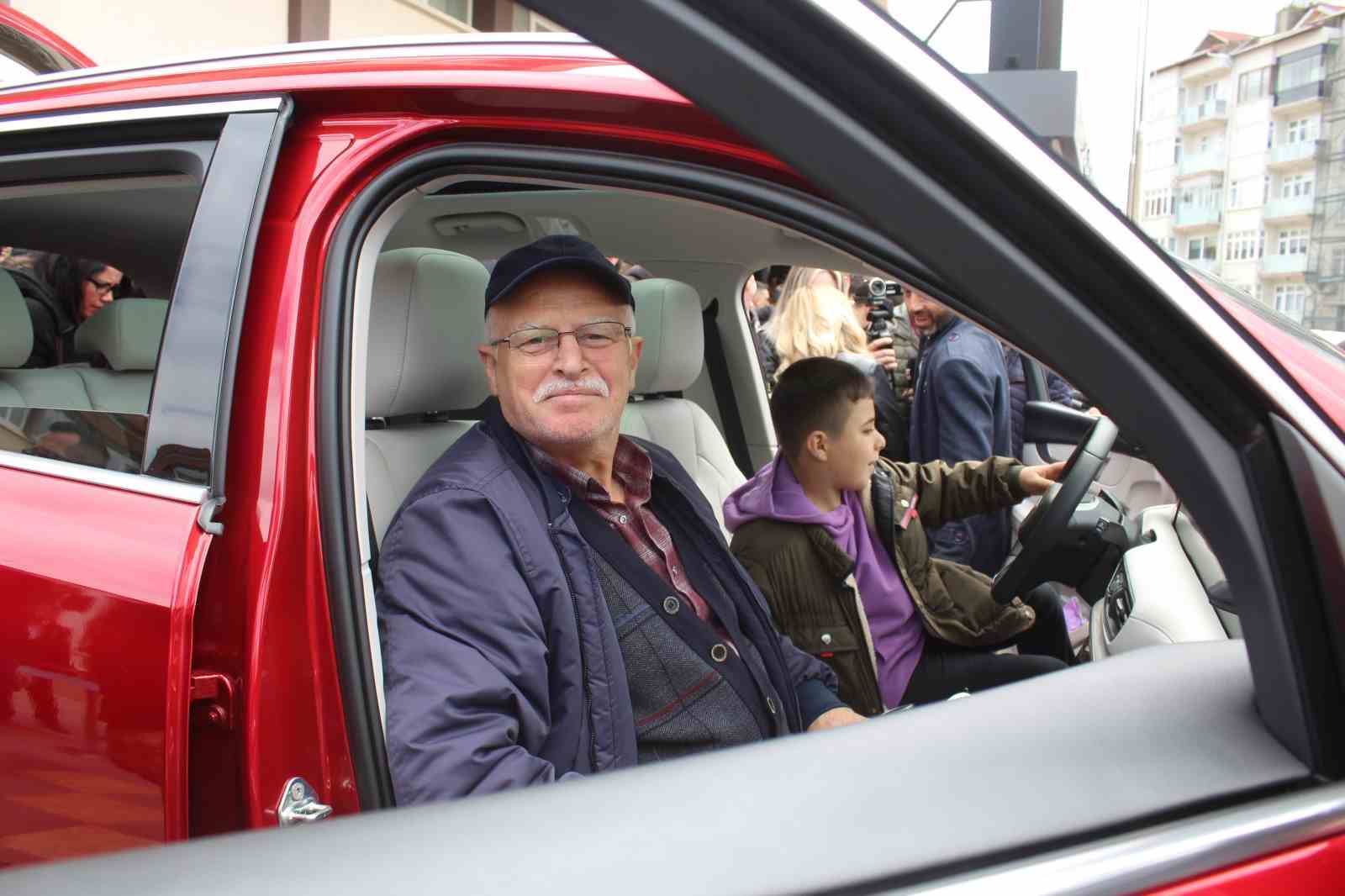 Türkiye’nin yerli otomobili Togg T10X modeli Sinop’ta meydanda sergilendi. Çok sayıda vatandaş araca yoğun ilgi göstererek inceledi, otomobilin içine oturarak fotoğraf çektirdi.