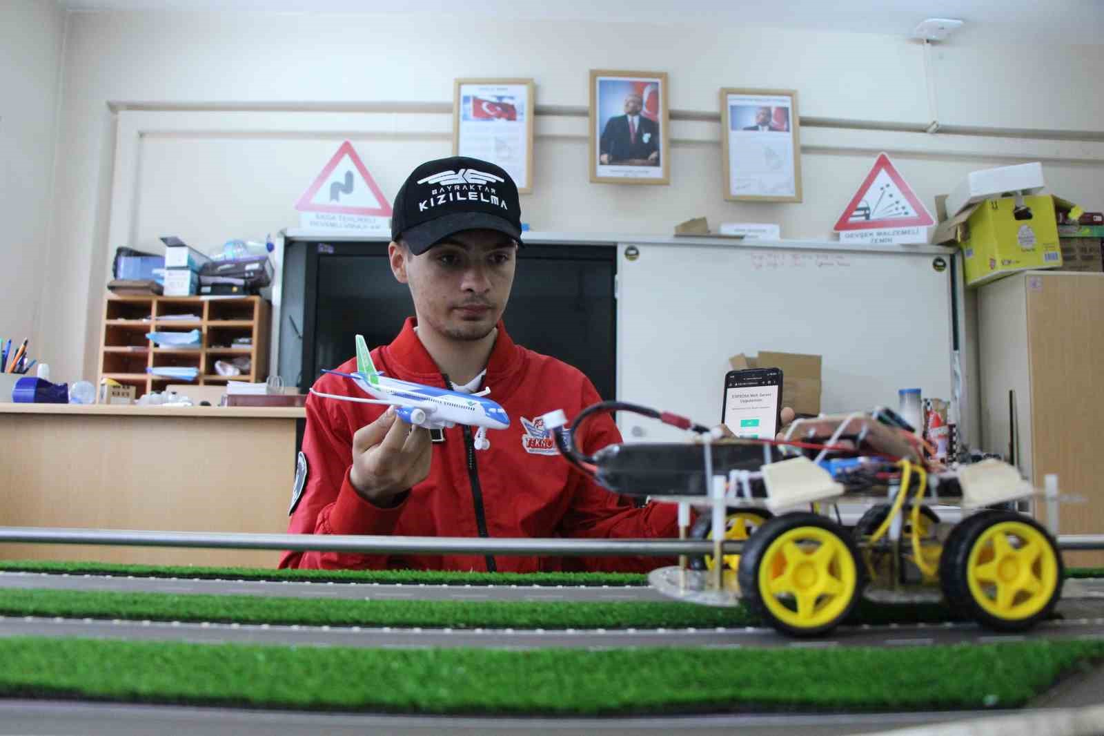 Amasya’da lise öğrencisi Melih Kılıçlı, uçaklar için insansız pist fren ölçüm istasyonu projesi tasarladı.