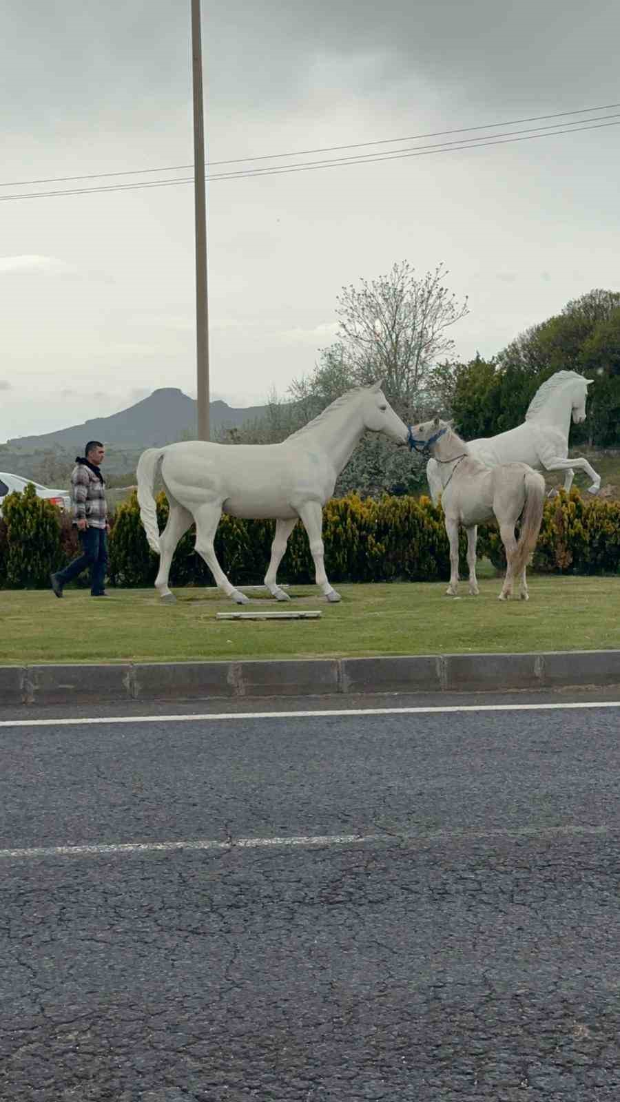 Nevşehir – Aksaray karayolu Terminal Kavşağı’nda ’Güzel Atlar Diyarı’ olması nedeniyle orta refüje döşenen at maketlerini gören başıboş bir at, dakikalarca maketlerin başından ayrılmadı. Maket atları gerçek sanarak oynamaya çalışan atı gören vatandaşlar, o anları cep telefonu kameralarıyla kaydederken ilginç görüntüler oluştu.