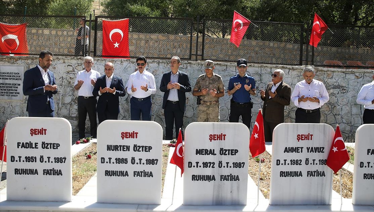 MARDİN (AA) – 20 Haziran 1987’de gerçekleştirilen katliamda hayatını kaybedenler için Pınarcık Mahallesi’ndeki şehitlikte düzenlenen törene, Ömerli Kaymakamlığına vekalet eden Savur Kaymakamı Muhammed Kaya, Ömerli Belediye Başkanı Hüsamettin Altındağ, İlçe Jandarma Komutanı Yüzbaşı Gökhan Çevik, İlçe Emniyet Amiri Çağdaş Tosun, güvenlik korucuları ve vatandaşlar katıldı.