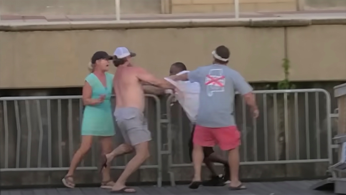 Tekneden bir kişi, siyahi kişi ile önce tartışıyor, ardından da saldırıya geçiyor.