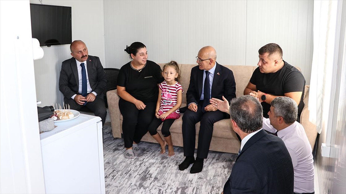 Daha sonra Örenli bölgesinde yapımı süren kalıcı konutlardaki örnek daireyi inceleyen Şimşek, yetkililerden çalışmalara ilişkin bilgi aldı.
