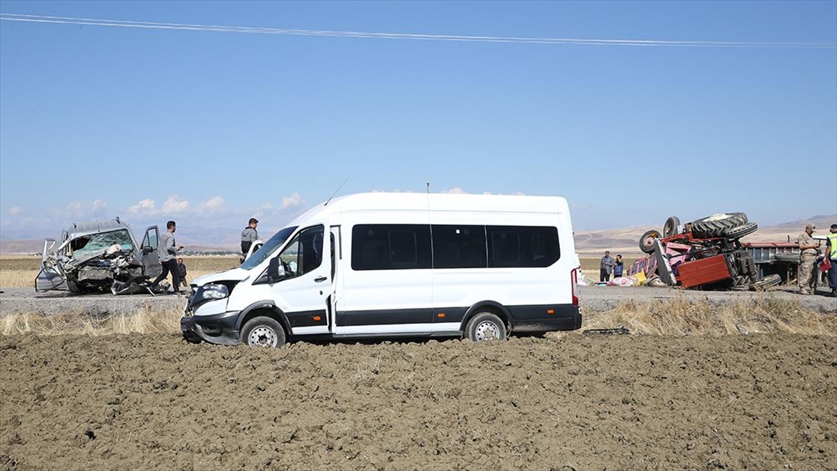 Kazada buğday yüklü traktör yola devrildi. Bu sırada aynı yönden gelen Abuzer Ç. yönetimindeki 49 J 1181 plakalı minibüs de devrilen traktöre çarparak yolun kenarındaki tarlaya savruldu.
