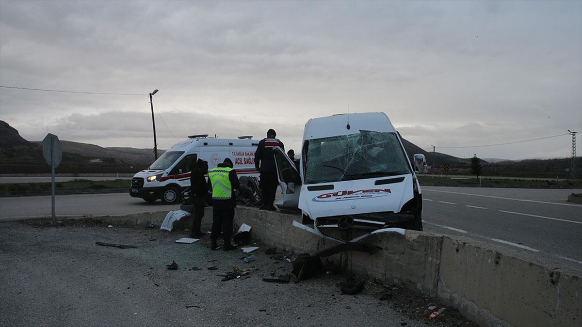 TOKAT (AA) – Adıgüzel Sarı idaresindeki 60 ACK 870 plakalı işçi servisi, Tokat Turhal kara yolu Çaylı kavşağında kontrolden çıkarak istinat duvarına çarptı.