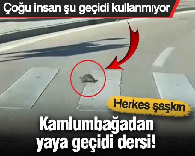 Kaplumbağadan yaya geçidi dersi: Herkes şaşkın!