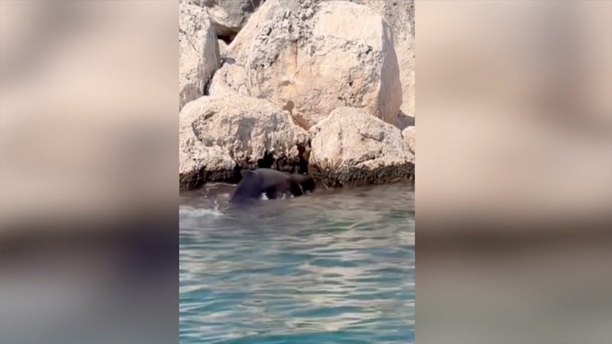 Antalya’da kayalıklara sıkışan balina yavrusu kurtarıldı