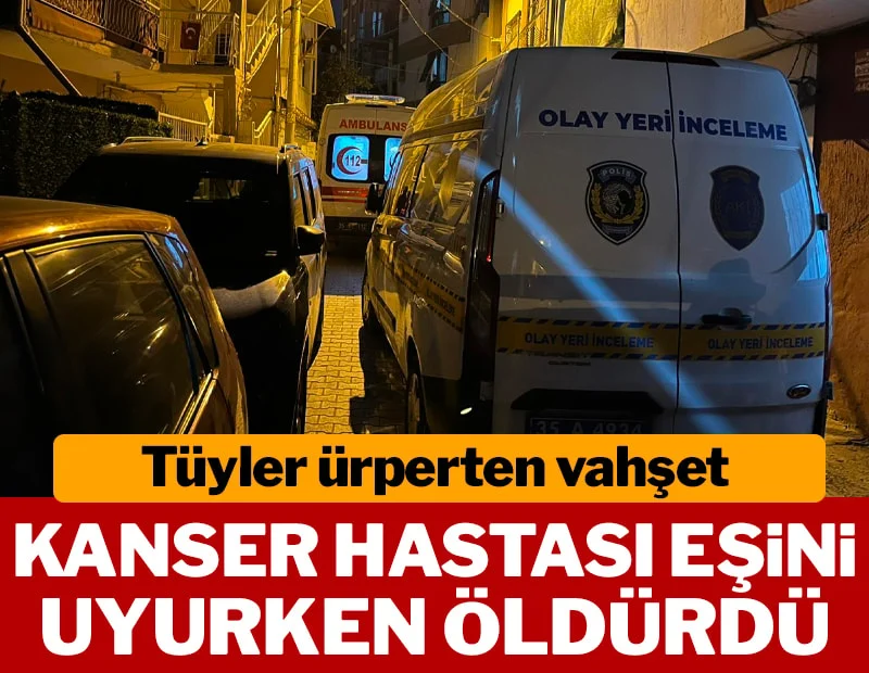 Bornova Rafetpaşa Mahallesi’nde R.T., kanser hastası eşi İzadiye Teker’i evde yatağında uyurken tabancayla vurdu. R.T., daha sonra 112 Acil Çağrı Merkezi’ni arayarak eşini silahla vurduğunu itiraf etti.
