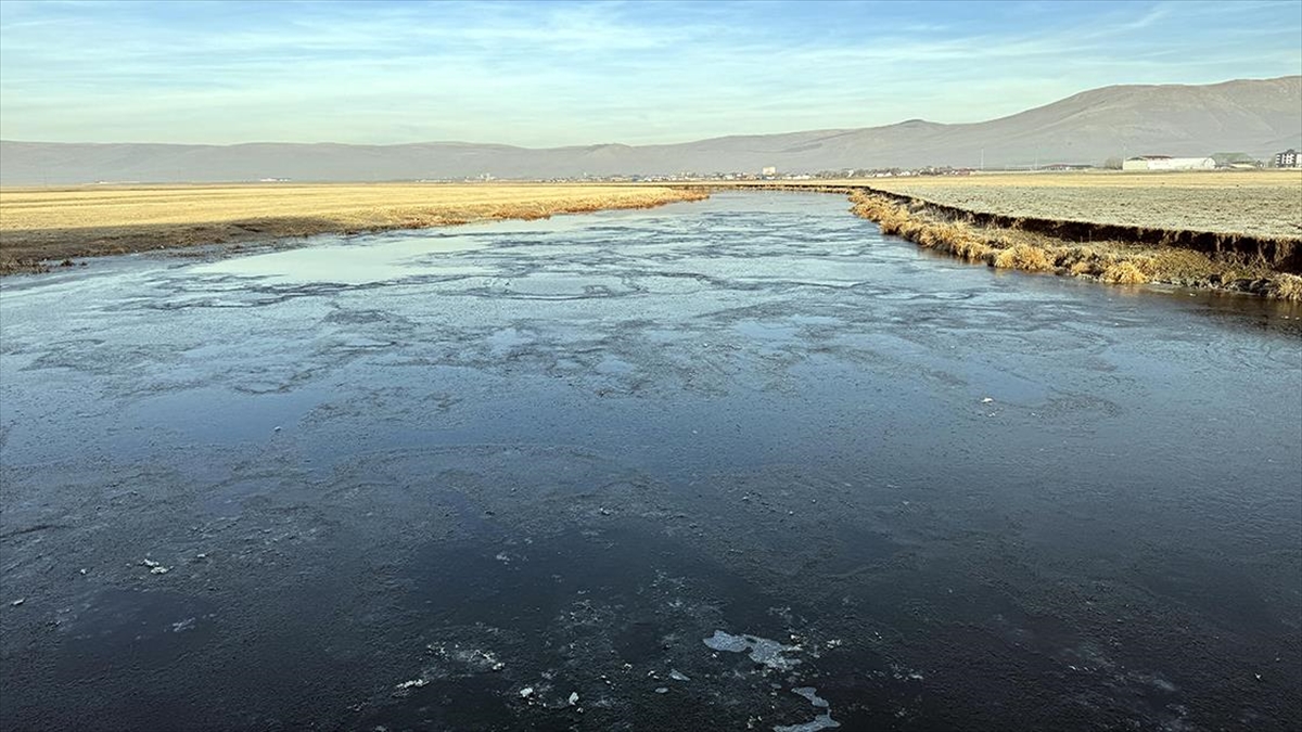Dondurucu soğuklar nedeniyle Kura Nehri’nin yüzeyinin bir kısmı buzla kaplanmaya başlandı.