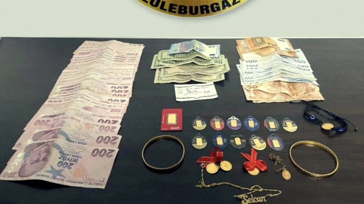 A.K., banka kasasında bulunan 145 adet 24 ayar gram, 12 ata altın, 6 Reşat altın, 21 çeyrek altın, 1 gerdanlık set, 2 burgulu bilezik, 2 adet 22 ayar bilezik, 2 tam altın, 2 kelepçeli bilezik, 1 zincir ve 2 bin 500 euroyu şüphelilere teslim etti.