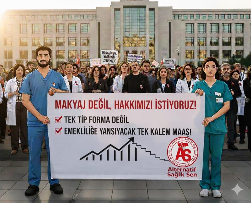 Alternatif Sağlık-Sen Sağlık Bakanlığı’na sesleniyoruz: Enerjinizi personelin kıyafetiyle uğraşmaya değil, personelin özlük haklarını iyileştirmeye harcayın. Şekilsel değişiklikler, tükenmişlik sendromu yaşayan sağlık ordusunun derdine derman olmayacaktır.