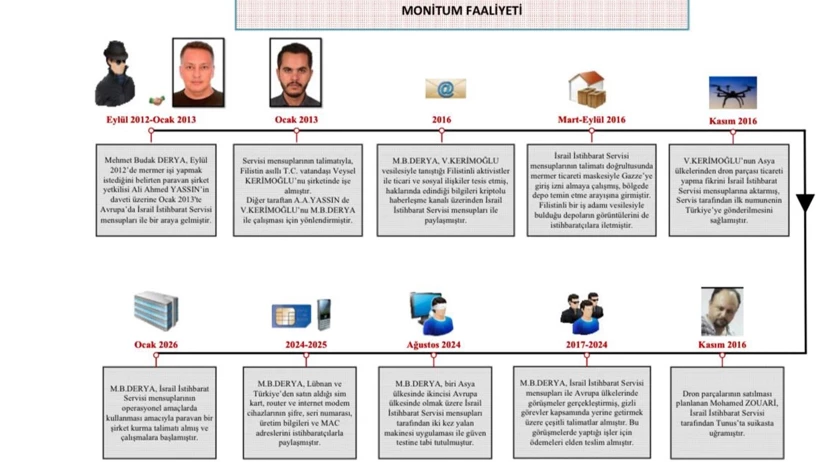 MOSSAD talimatıyla Filistin asıllı Türk vatandaşı Veysel Kerimoğlu’nu işe alan Derya, Kerimoğlu’nun Ortadoğu ağını kullanarak İsrail karşıtı Filistinli şahıslar hakkında bilgi toplamış.