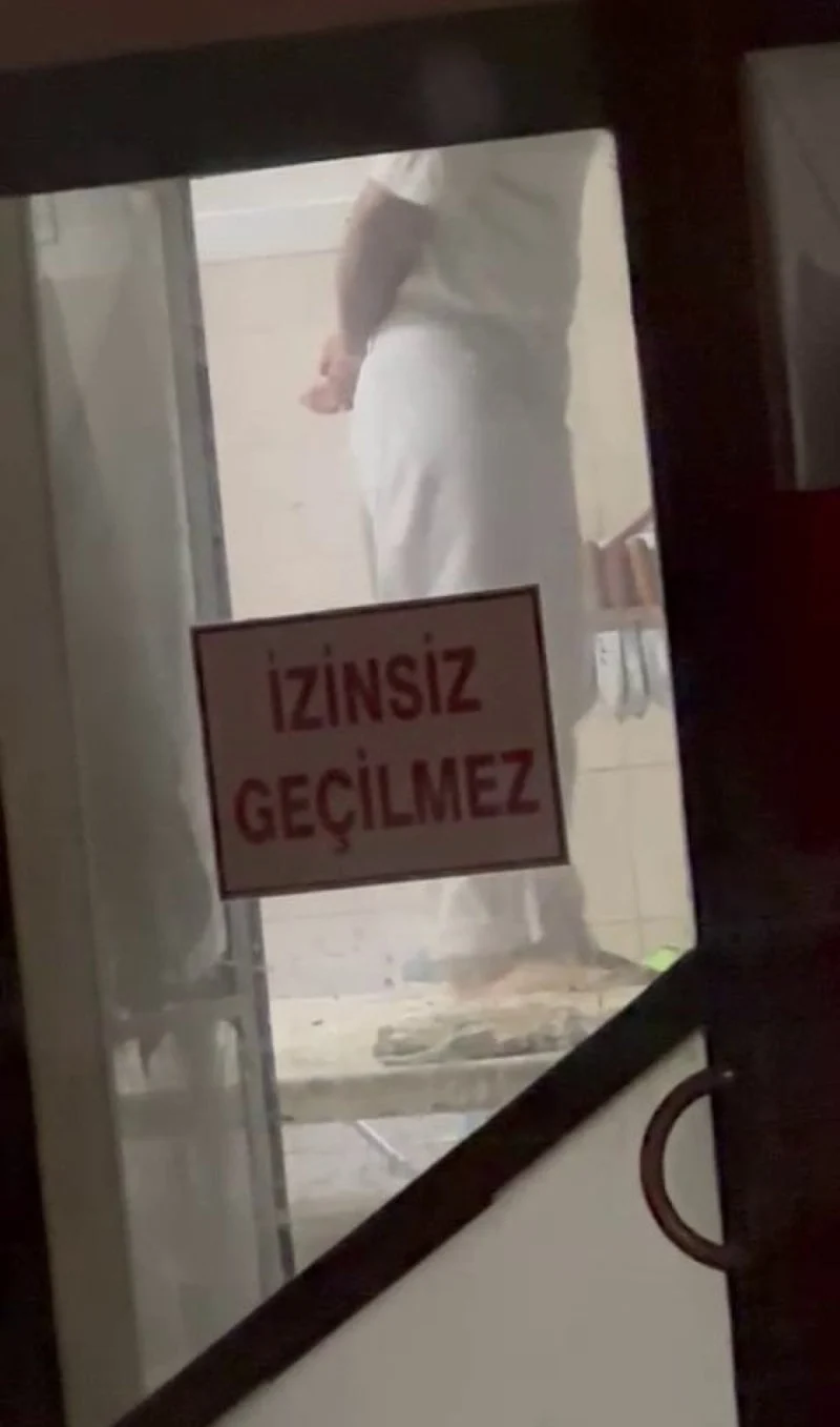 İnfial oluşturan görüntülerde, bir çalışanın üretim alanındaki tezgahın üzerine çıkarak hamuru ayağıyla çiğnediği görüldü.