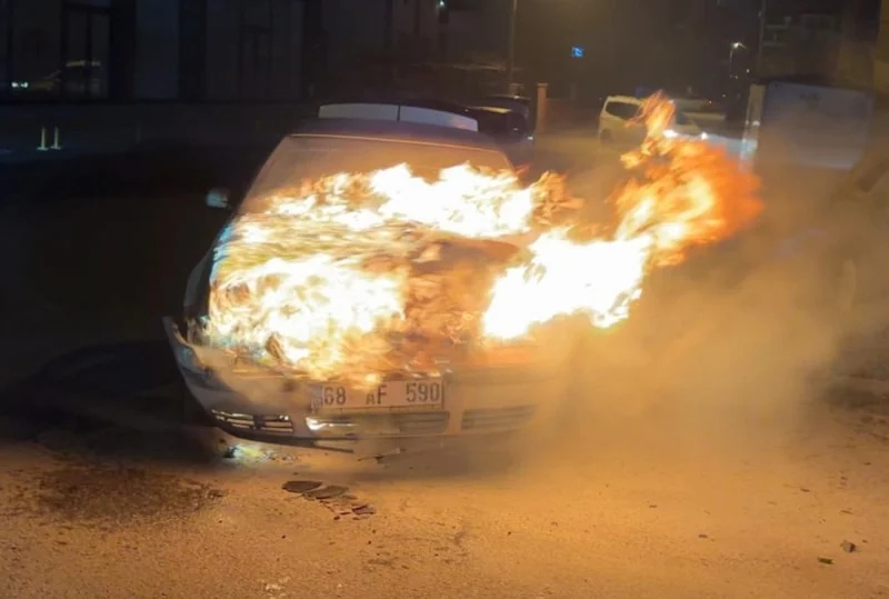 Motor kısmından dumanlar yükselen bir otomobil, kısa sürede alevlere teslim oldu. Yangına antifriz ve antifrizli cam suyu dökerek müdahale etmeye çalışan sürücü, alevlerin daha da büyümesine neden oldu.