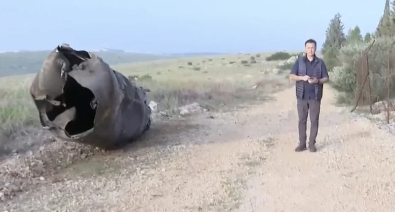 İsrail tarafından havada imha edilen devasa füzeyi, üç hilal tv ekibinden muhabir Osman Terkan ve kameran Cüneyt Ali Horozal, Tel Aviv’de görüntüledi.