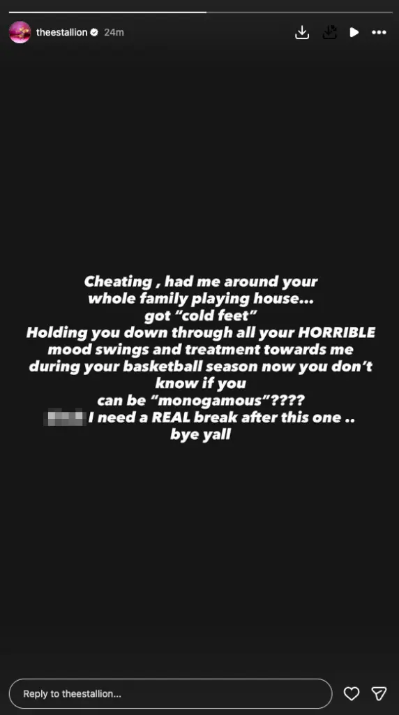 Megan Thee Stallion, yaklaşık bir yıllık birlikteliğin ardından Klay Thompson‘dan ayrıldıktan sonra “gerçek bir ara vermeye” ihtiyacı olduğunu belirtti.